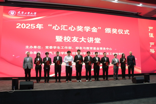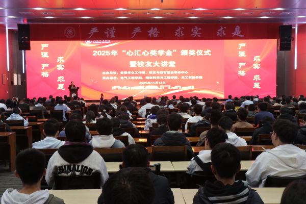 11月13日,我校2025年“心汇心奖学金”颁奖仪式暨校友大讲堂在学术中心举行。电气自动化专业90级校友、阳光心汇心基金会联合发起人、理事长、大连德迈仕董事长、我校教育发展基金会理事潘异先生,副校长沈浩鹏出席仪式。教务处、研究生院、校友与教育基金事务中心以及电气工程学院、控制科学与工程学院、天工创新学院有关负责同志及获奖学生代表200余人参会。
