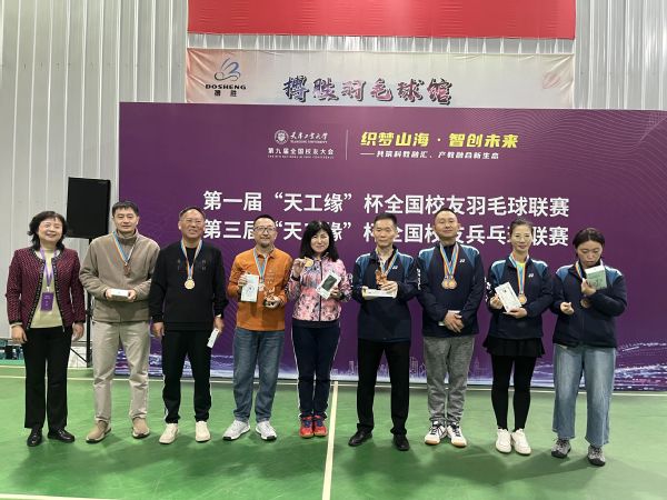 2025年10月31日,我校第三届“天工缘”杯全国校友乒乓球联谊赛、第一届“天工缘”杯全国校友羽毛球联谊赛在天津工业大学第九届全国校友大会期间于青岛成功举办。校友总会理事长陈莉出席开、闭幕式并讲话。本次赛事由山东校友会承办、天津校友会协办,共有来自全国各地的14支校友代表队参赛。乒乓球赛总裁判长由上海校友会会长邵如林担任,羽毛球赛总裁判长由吉林校友会秘书长谭宏伟担任。
