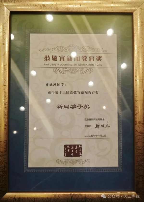 我校人文学院2019级广播电视学专业本科校友、广州校友会副秘书长曾晓涛荣获“新闻学子奖”。