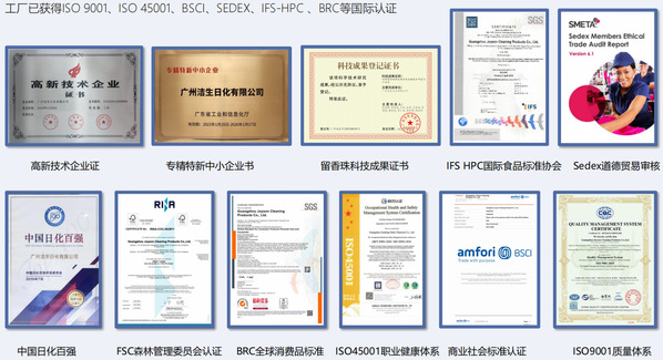 范耐斯旗下公司已累计获得超过80项自主知识产权专利,在美洲、欧洲、南非、东南亚、日韩、澳洲等主流市场完成专利布局。从环保洗衣片到多效合一清洁产品,从抗抑菌技术到PEG留香技术,范耐斯始终以科技驱动产品升级,引领行业标准制定。此外,工厂已通过ISO 9001、ISO 45001、BSCI、SEDEX、IFS-HPC、BRC等多项国际认证,确保从原料到成品的每一个环节都符合高标准的质量与安全规范。
