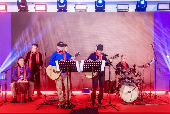 会议结束后举行了年会活动,杨世滨会长致祝词,“老男孩” 乐队的献唱唤起校友们的青春记忆,全场齐唱《我的祖国》致敬祖国与时代,更将现场氛围推至高潮。兄弟校友会代表的互祝献礼以及抽奖互动和即兴表演穿插其间,充分展现了天工校友的凝聚力与向心力。
