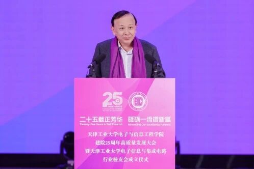 二十五载正芳华,砥砺一流谱新篇。12月28日,天津工业大学电子与信息工程学院建院25周年高质量发展大会暨电子信息与集成电路行业校友会成立仪式在大学生活动中心礼堂举行。院士专家、兄弟院校代表、企业界嘉宾、海内外校友、学校及学院领导、退休教师和在校师生齐聚一堂,共同回顾奋斗历程,展望发展前景,凝聚奋进力量。