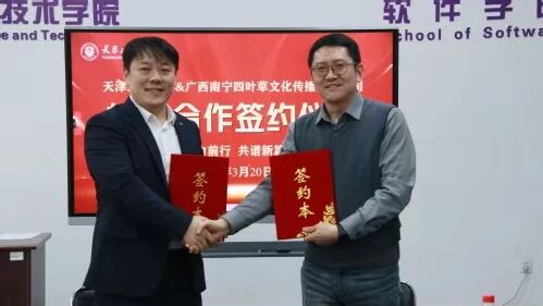 仪式上,校企双方签署合作协议。根据协议内容,双方将秉持“优势互补、分步推进、协同共赢”的原则,共同筹建“元宇宙智能创意现代产业学院”,深化产教融合,推进校企协同育人机制创新。作为我校动画专业培养的优秀校友代表,周卫炜深耕动画产业十余载,带领四叶草公司在行业内积累了深厚的技术实力与丰富的产业资源。此次协议的签订,标志着我校校友企业反哺母校、深化产教融合的又一重要实践落地。