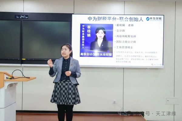 随后,中为互联网财税平台联合创始人崔桂娟校友聚焦《金税四期背景下企业财税合规管理》,针对金税四期“以数治税”的穿透式监管特性,详细拆解“三流一致”“四流合一”的实操标准与落地要点。她还分享了“智能税管系统应用+常态化风险排查”的实用工具与方法,干货满满的内容让在场校友频频拍照记录,直呼“解渴”。